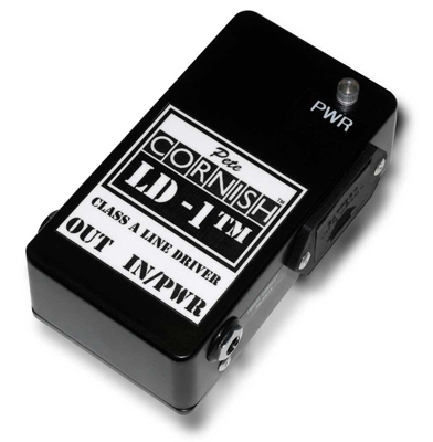Our low noise discrete component Class A pre-amplifier has been specifically designed to overcome the problems often encountered with amplification of Electric Instruments fitted with magnetic transducers. A frequent cause of these problems is the mismatch of the impedance in the electrical circuit between the pickup and subsequent equipment: this mismatch has been completely eliminated with the introduction of our LD-1™ Line Driver. The input impedance is identical to a high quality tube amplifier and our Class A Pre-amplifier also features a highly effective RF filter which will help prevent interference from nearby radio transmitters. The pickup output should be connected directly to the LD-1™ input with a low loss, screened cable; the LD-1™ output can now be fed to any effects or volume pedals (if used) and then on to the amplifier, using fully screened cables throughout. A further use of the LD-1™ is to isolate long cable feeds which can cause signal and tone losses at the end of an effects chain, particularly if the final effect has a high impedance output (for instance a 250KW foot volume pedal). When using many effects it can be beneficial to add a LD-1™ mid way along the chain thus preventing a build up of signal losses that can occur with mismatched impedances between effects. POWER SUPPLY: The battery is replaceable via the removable “drawer” and we recommend alkaline types. The battery is switched on when you insert the “IN / PWR” jack and to ensure long battery life unplug this lead when the unit is not in use. If the unit is not to be used for a long length of time, we recommend that you remove the battery. Preferred battery types are MN1604. Also fitted is an input for a DC adaptor: the size of the connector is M2.1 with negative (-VE) tip. The voltage rating of the adaptor should be fully stabilized at 9.6V and capable of supplying 20mA. We recommend the use of the BOSS PSA series adaptors (PSA-100/110/220 or 240 depending on your local AC supply voltage) as meeting the above criteria and cannot accept any liability for damage caused to this unit by the use of any other type of AC/DC adaptor. IMPORTANT NOTE: This unit has now been upgraded to Dual Voltage. Using a 9.6vDC adaptor (Boss PSA series or similar) the performance will be identical to when Battery powered. Using a fully smoothed and regulated AC/DC adaptor with an output voltage of 24vDC Maximum, and capable of supplying 20mA, the signal performance of the unit will be as show below. Please do not use an adaptor with a higher output voltage than the specified 24vDC maximum, or of reversed polarity, as it may damage the unit and such damage will not be covered under the terms of our guarantee. An adaptor with an AC voltage output should NOT be used. Although the current consumption of our Stand Alone pedals is