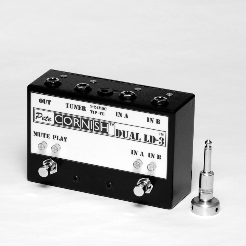 The pickup outputs should be connected directly to either of the DUAL LD-3™ inputs with a low loss, screened cable; the DUAL LD-3™ OUTPUT can now be fed to any chain of effects or volume pedal etc. (if used) and then on to the amplifier, using fully screened cables throughout. Selection of the active input is via the footswitch marked IN A or IN B and the adjacent LED will indicate the active channel.
