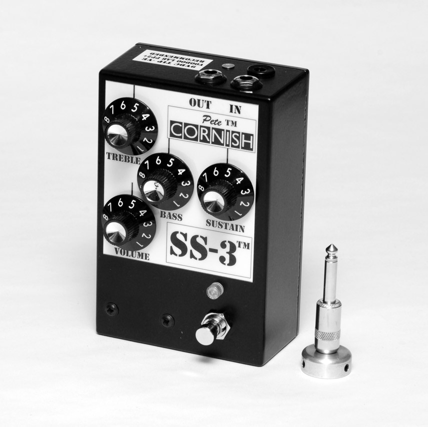 CORNISH SS-3™ is great for crunchy rhythm and a nice thick bluesy lead; the sound is very much like an overdriven vintage valve amp. The SS-3™ is currently being used by Noel Gallagher of Oasis, and is also a firm favorite of David Gilmour of Pink Floyd, amongst others. It has the best bottom end retention ever heard in an effect, whilst the midrange is sweet and very transparent. The SS-3™ retains all the tonal nuances of your guitar and will make it come alive. It is subtle and yet capable of amazing power and sustain. Using the SS-3™ with a clean amp it is possible to progress from subtle overdriven amp sounds, through rhythmic crunch, up to a blues' lead. The tonal characteristics and dynamics of the
